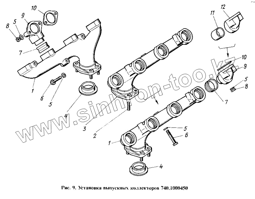 Каталог запасных частей к технике: Камский автозавод 4310. Установка выпускных коллекторов