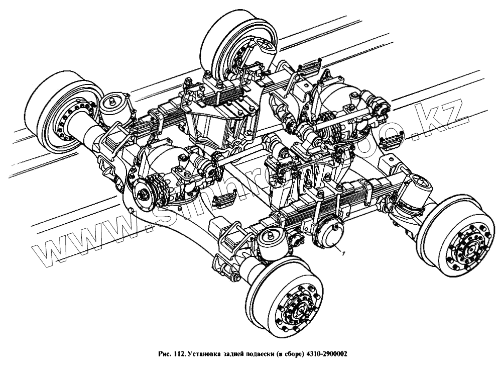 Каталог запасных частей к технике: Камский автозавод 4310. Установка задней подвески (в сборе)