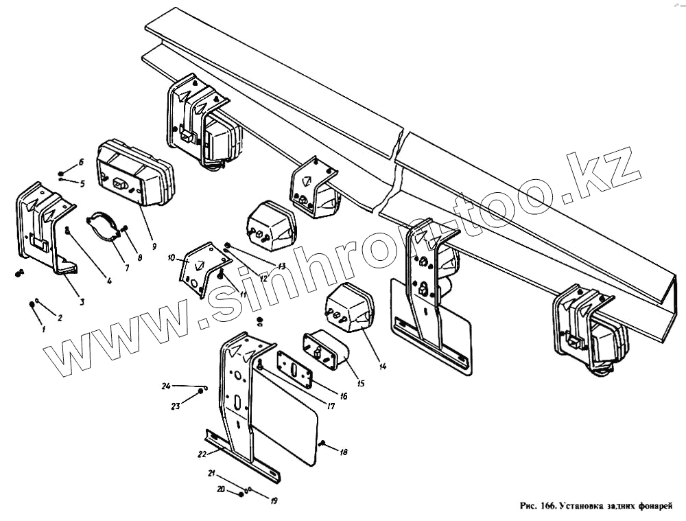Каталог запасных частей к технике: Камский автозавод 4310. Установка задних фонарей