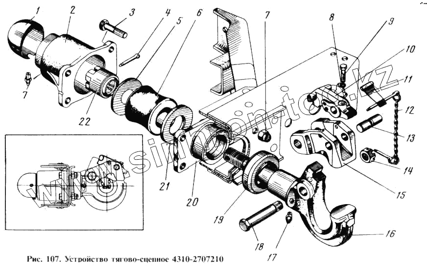 Каталог запасных частей к технике: Камский автозавод 4310. Устройство тягово-сцепное. Подгруппа 2707