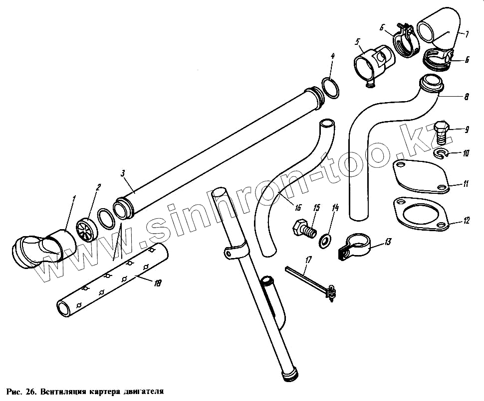 Каталог запасных частей к технике: Камский автозавод 4310. Вентиляция картера двигателя