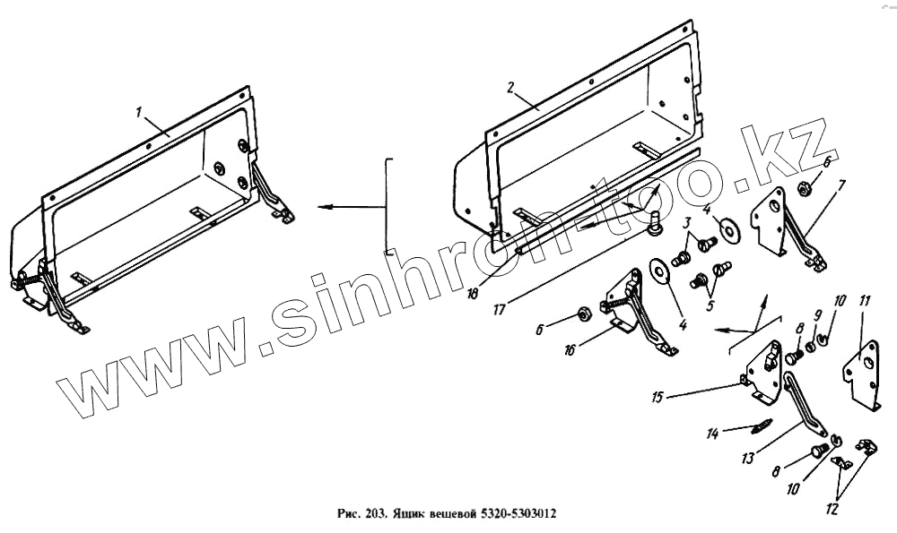 Каталог запасных частей к технике: Камский автозавод 4310. Ящик вещевой