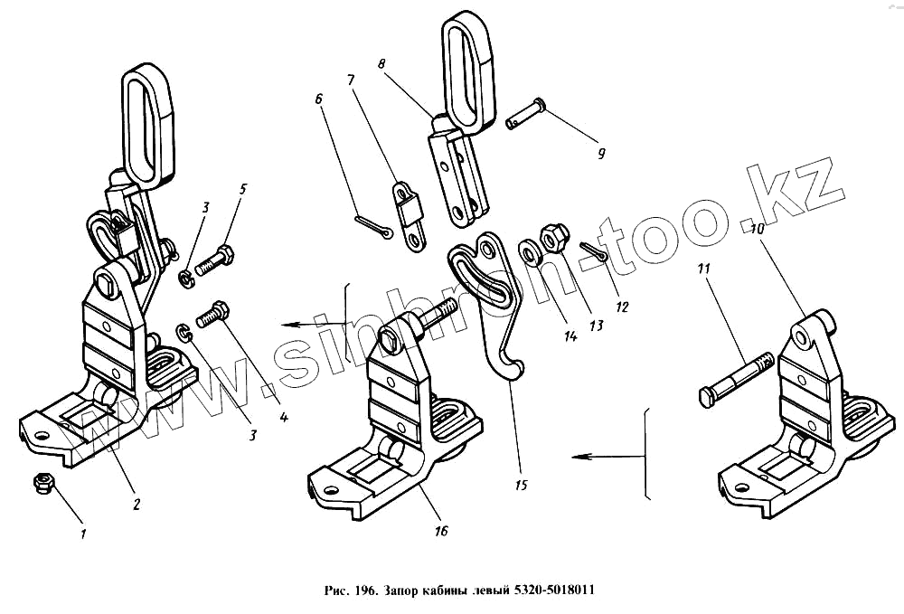 Каталог запасных частей к технике: Камский автозавод 4310. Запор кабины левый