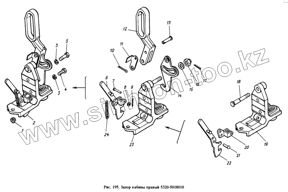Каталог запасных частей к технике: Камский автозавод 4310. Запор кабины правый