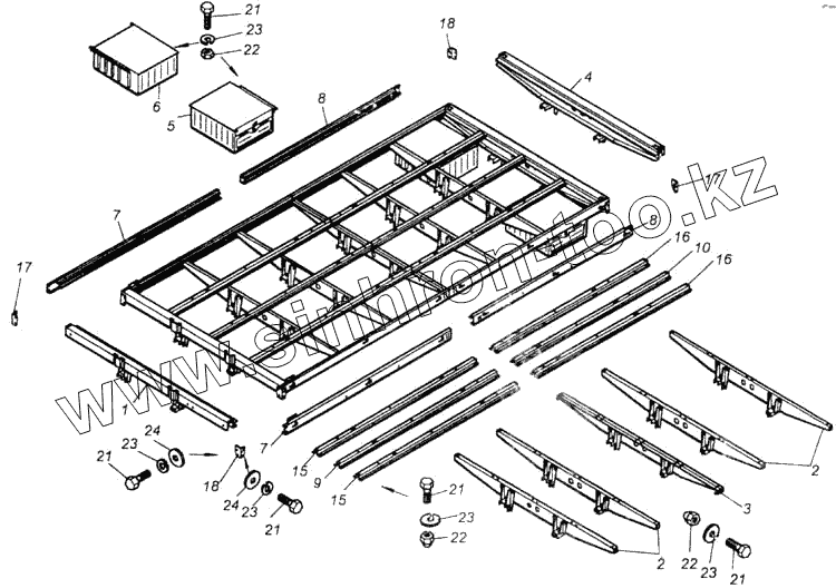 Каталог запасных частей к технике: Камский автозавод 43114. Каркас основания платформы