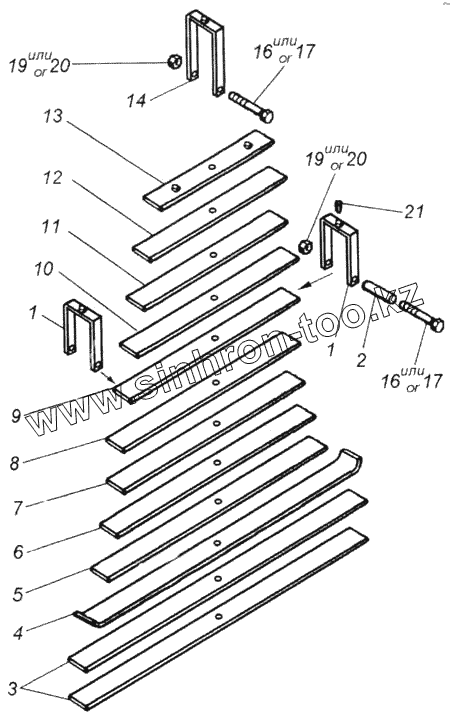 Каталог запасных частей к технике: Камский автозавод 43114. Рессора задняя