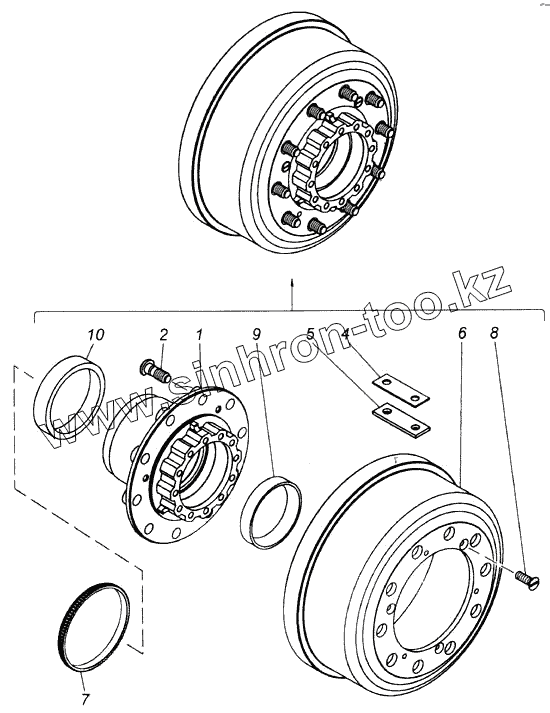 Каталог запасных частей к технике: Камский автозавод 43114. Ступица колеса с барабаном тормоза