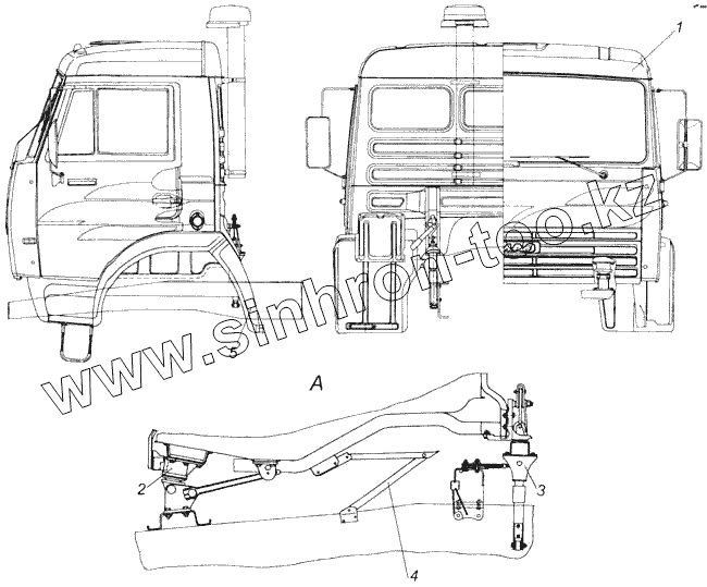 Каталог запасных частей к технике: Камский автозавод 43114. Установка кабины