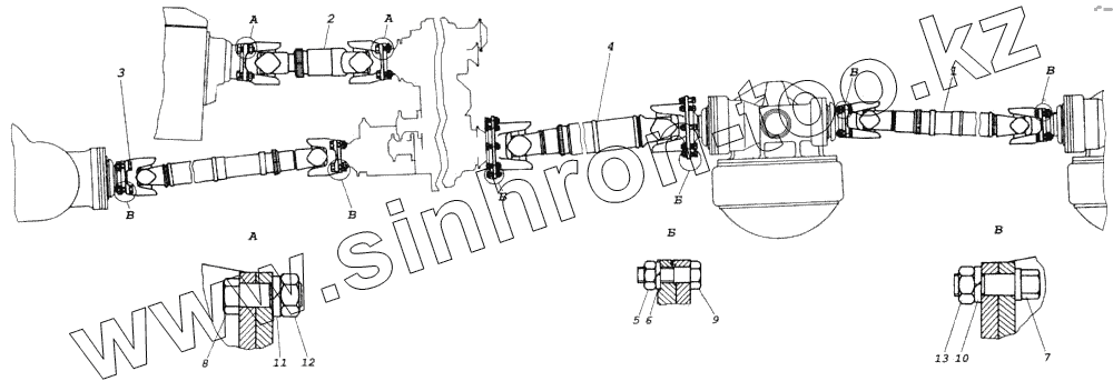 Каталог запасных частей к технике: Камский автозавод 43114. Установка карданных валов