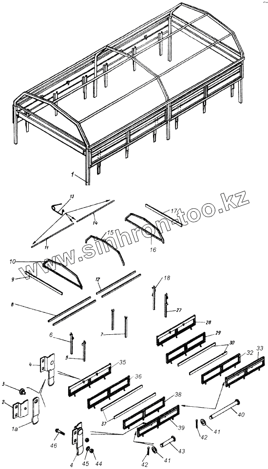 Каталог запасных частей к технике: Камский автозавод 43114. Установка каркаса тента