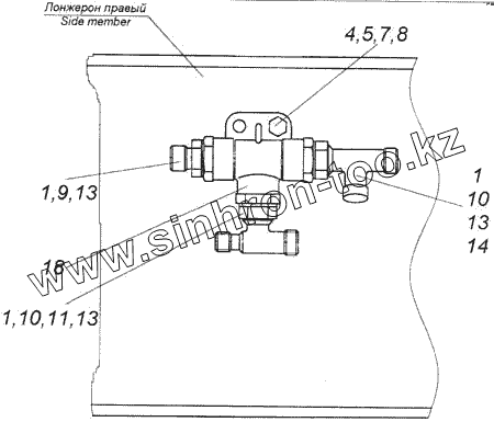 Каталог запасных частей к технике: Камский автозавод 43114. Установка клапана двухмагистрального