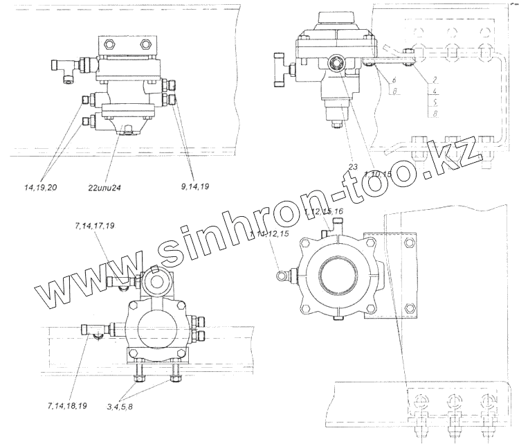 Каталог запасных частей к технике: Камский автозавод 43114. Установка клапана управления тормозами прицепа