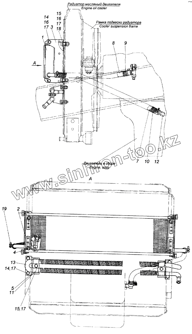 Каталог запасных частей к технике: Камский автозавод 43114. Установка масляных радиаторов