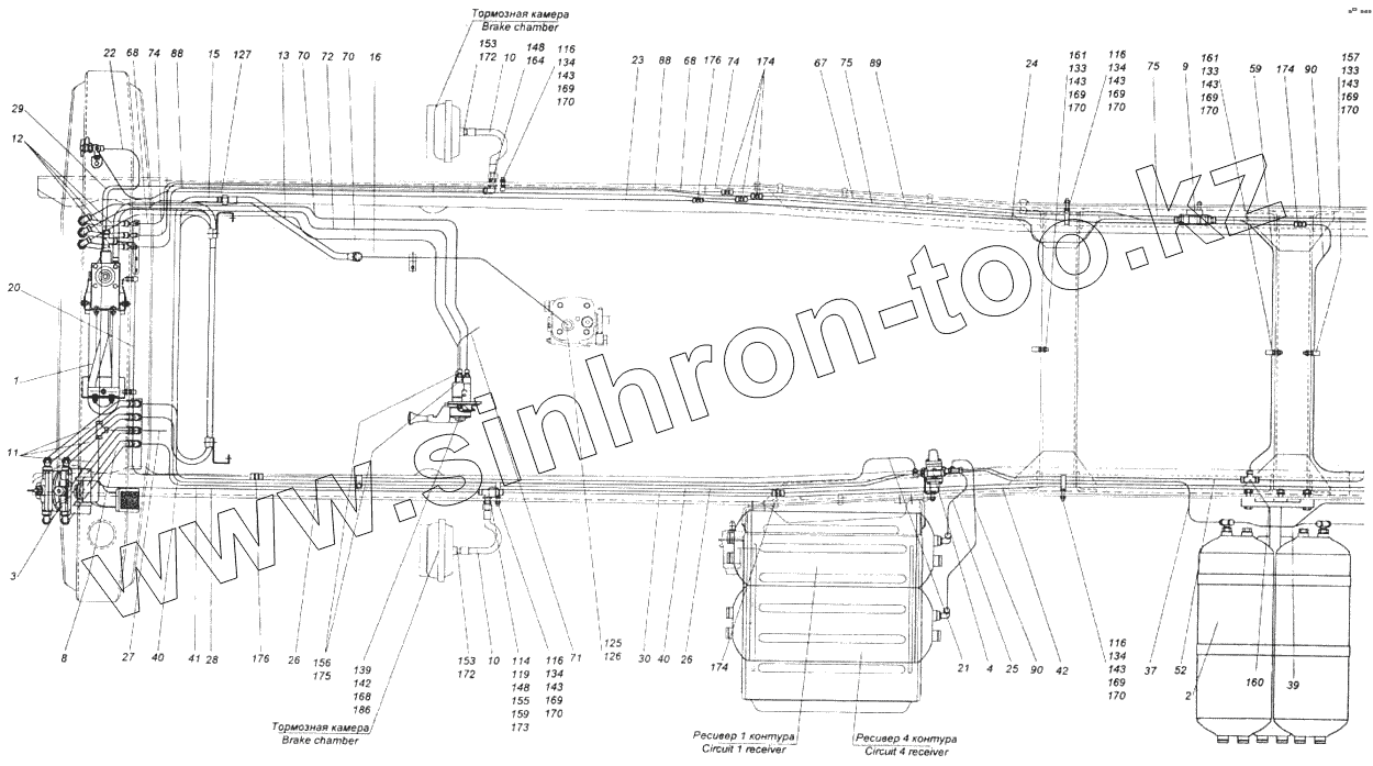 Каталог запасных частей к технике: Камский автозавод 43114. Установка пневмотормозов
