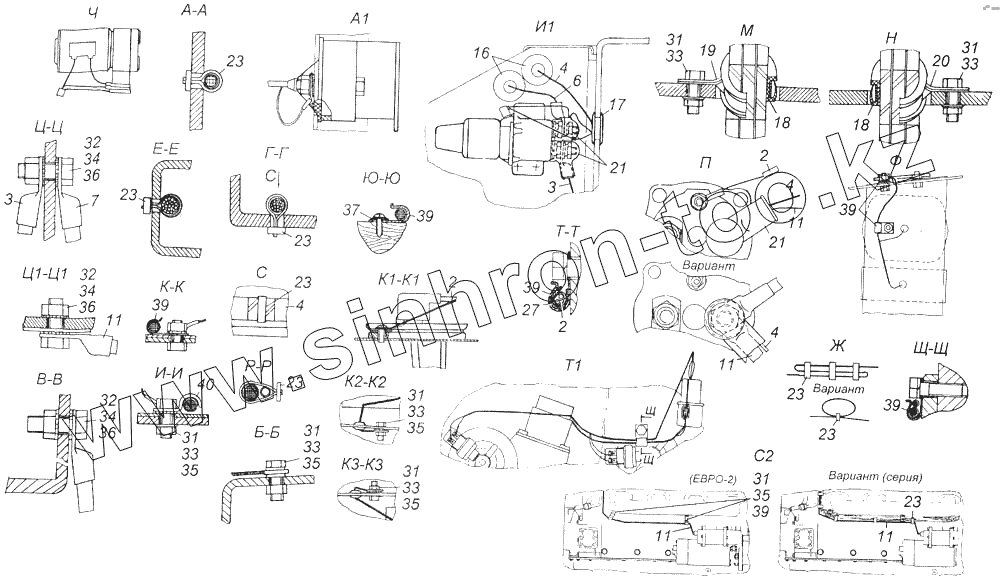Каталог запасных частей к технике: Камский автозавод 43114. Установка проводов на шасси