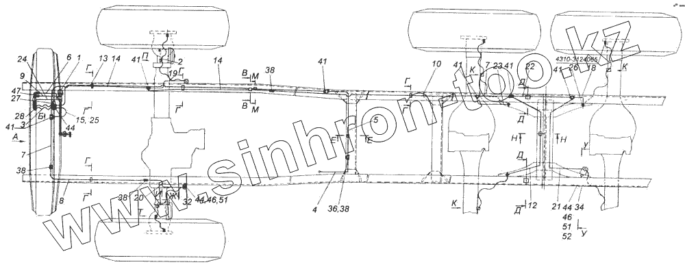 Каталог запасных частей к технике: Камский автозавод 43114. Установка системы накачки шин