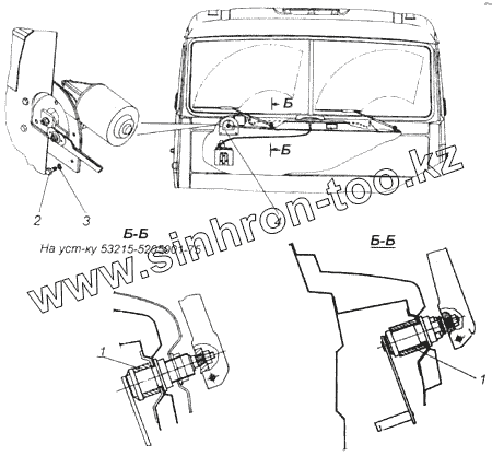 Каталог запасных частей к технике: Камский автозавод 43114. Установка стеклоочистителя