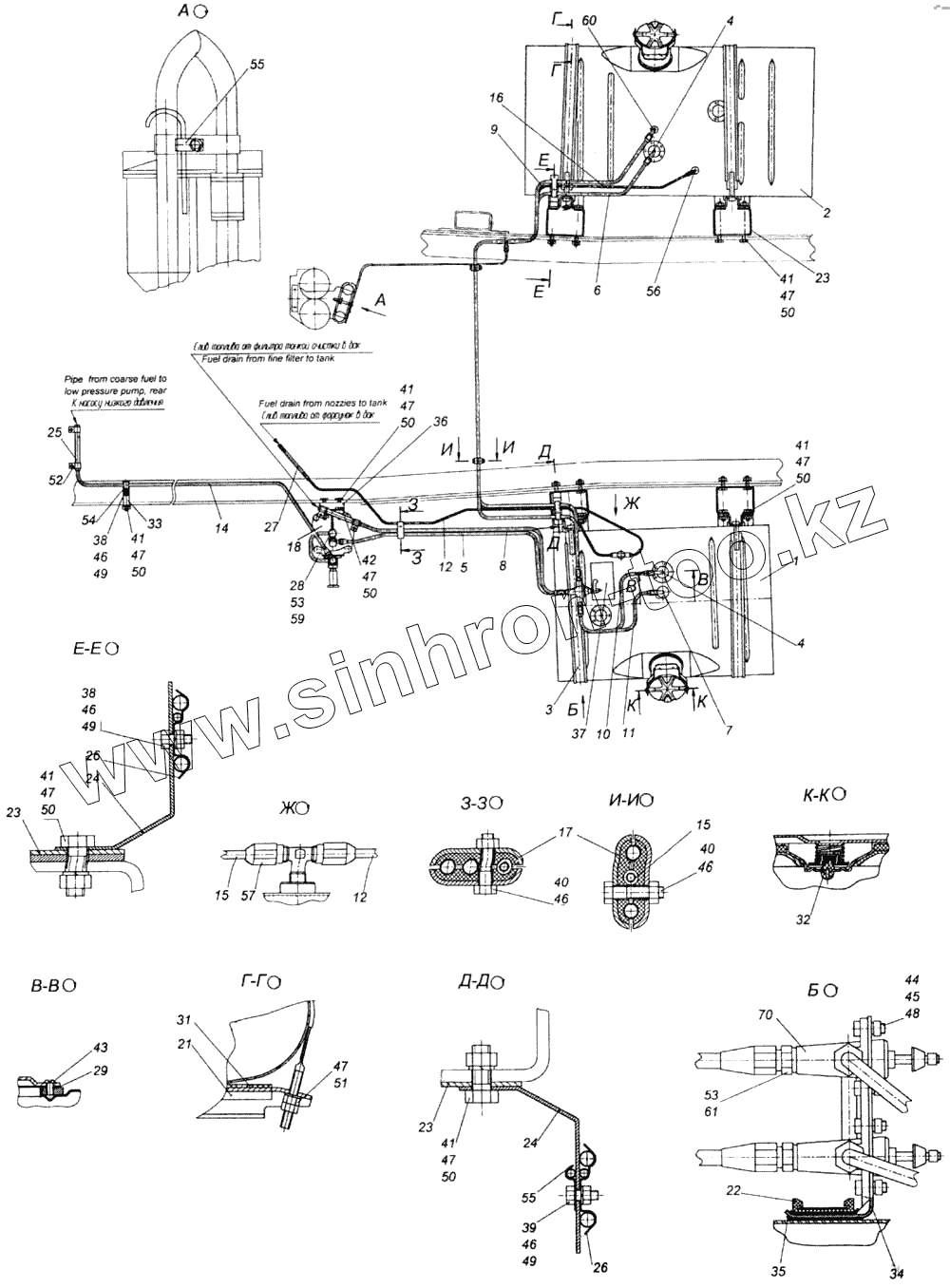 Каталог запасных частей к технике: Камский автозавод 43114. Установка топливных баков, ФГОТ и топливопроводов