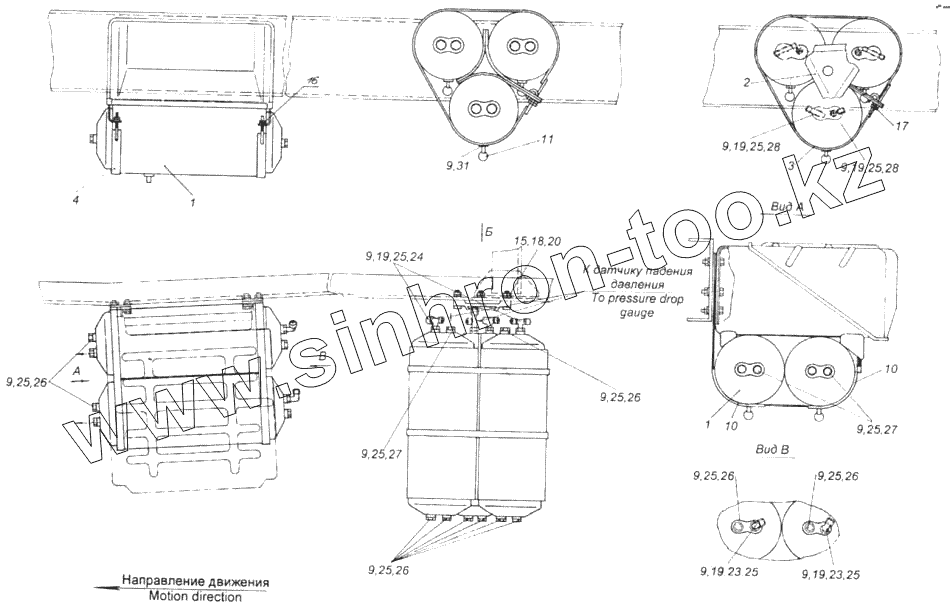 Каталог запасных частей к технике: Камский автозавод 43114. Установка воздушных ресиверов