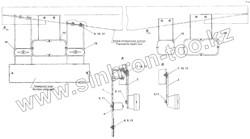 Каталог запасных частей к технике: Камский автозавод 43114. Установка задних фонарей