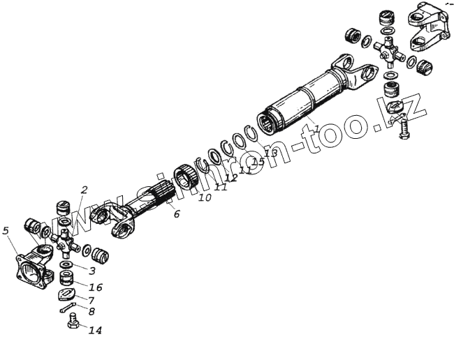 Каталог запасных частей к технике: Камский автозавод 43114. Вал карданный заднего моста с карданами