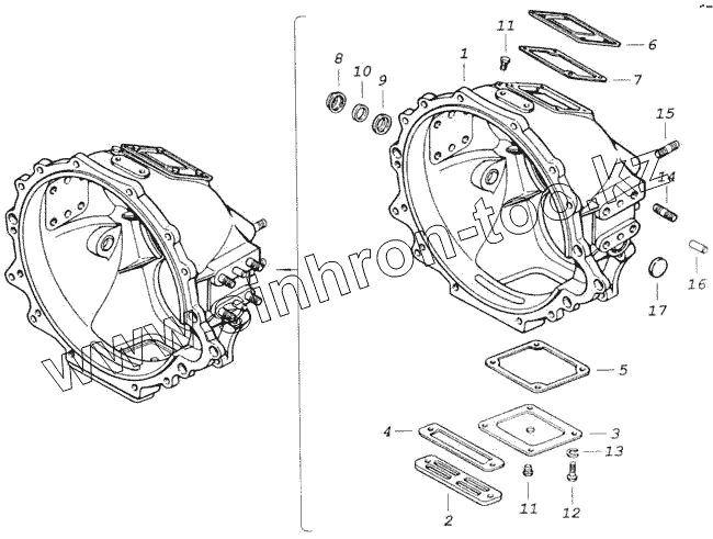 Каталог запасных частей к технике: Камский автозавод 43118. Картер сцепления