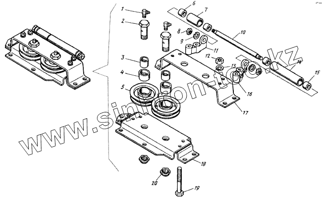 Каталог запасных частей к технике: Камский автозавод 43118. Ролики направляющие троса лебедки в сборе