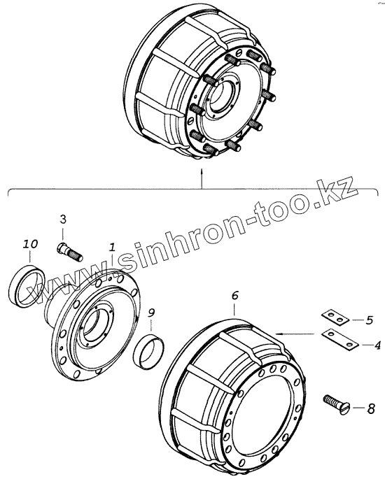 Каталог запасных частей к технике: Камский автозавод 43118. Ступица с барабаном тормоза
