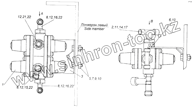 Каталог запасных частей к технике: Камский автозавод 43118. Установка четырехконтурного защитного клапана
