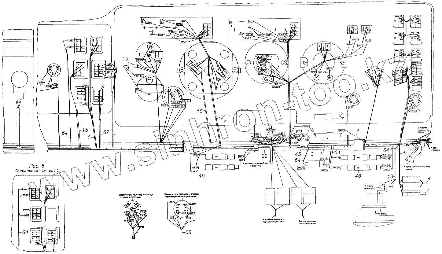 Каталог запасных частей к технике: Камский автозавод 43118. Установка проводов на кабине