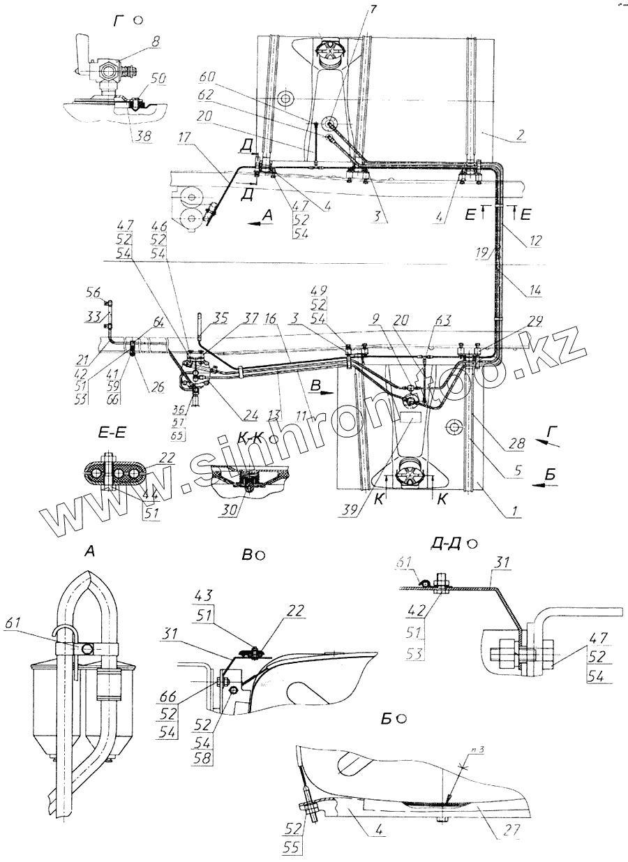 Каталог запасных частей к технике: Камский автозавод 43118. Установка топливных баков, ФГОТ и топливопроводов