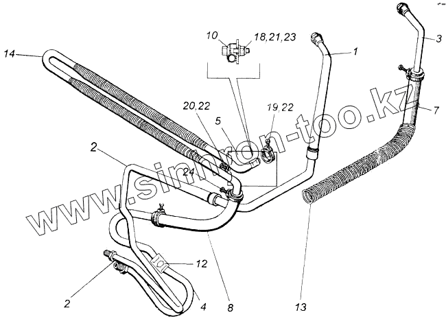 Каталог запасных частей к технике: Камский автозавод 43118. Установка трубопроводов рулевого управления