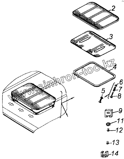 Каталог запасных частей к технике: Камский автозавод 43118. Установка вентиляционного люка крыши