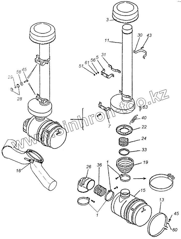 Каталог запасных частей к технике: Камский автозавод 43118. Установка воздушного фильтра