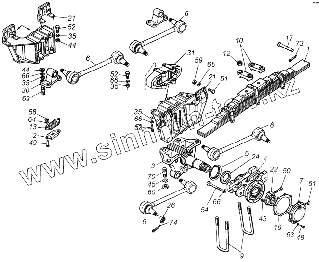 Каталог запасных частей к технике: Камский автозавод 43118. Установка задней подвески