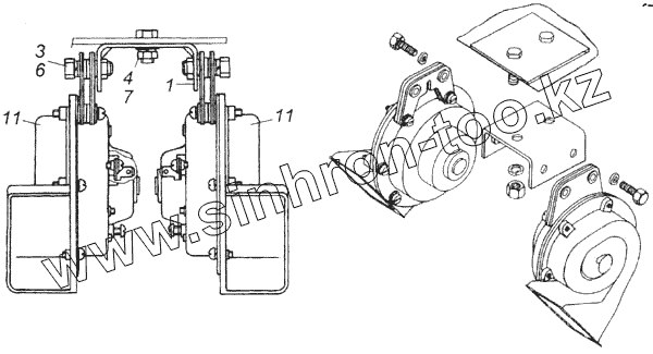Каталог запасных частей к технике: Камский автозавод 43118. Установка звуковых электрических сигналов