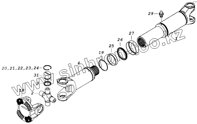Каталог запасных частей к технике: Камский автозавод 43118. Вал карданный среднего моста