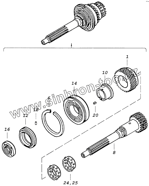 Каталог запасных частей к технике: Камский автозавод 43118. Вал первичный делителя передач
