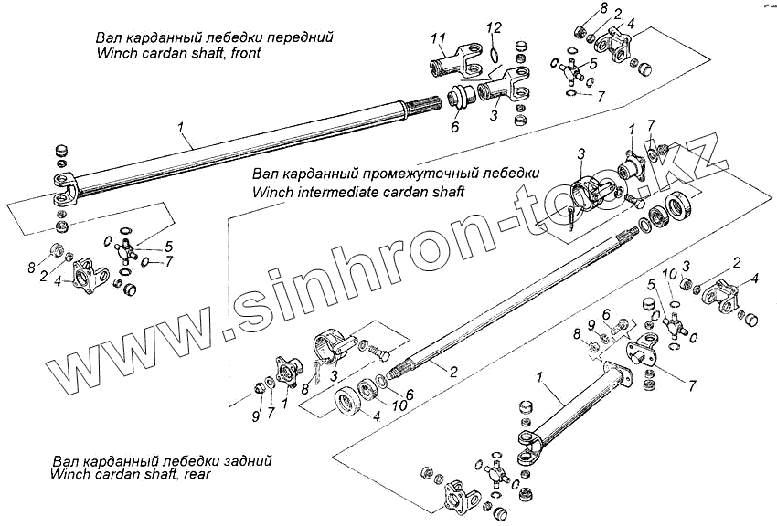 Каталог запасных частей к технике: Камский автозавод 43118. Валы карданные лебедки