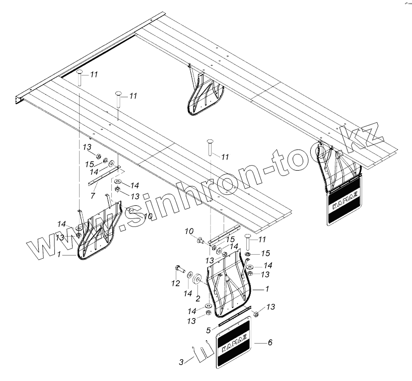 Каталог запасных частей к технике: Камский автозавод 43118 (Евро 4). 43118-8511008-70 Установка брызговиков