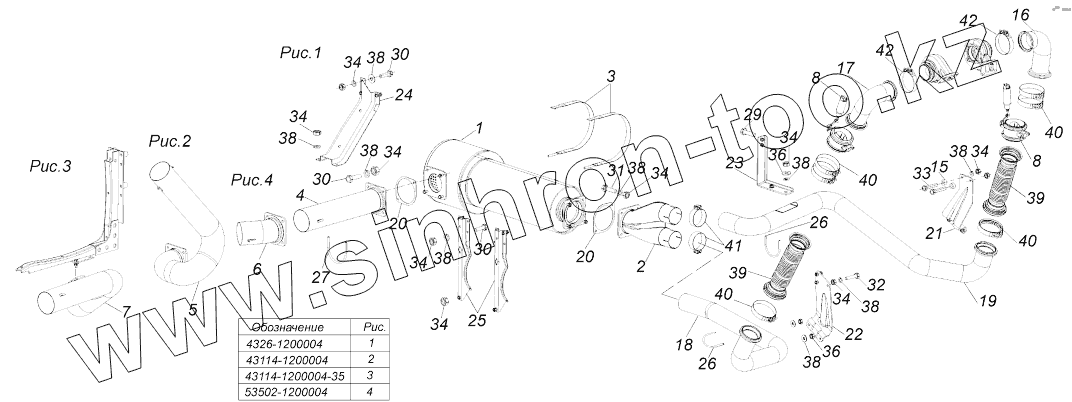 Каталог запасных частей к технике: Камский автозавод 43118 (Евро 4). 4326-1200004 Установка системы выпуска