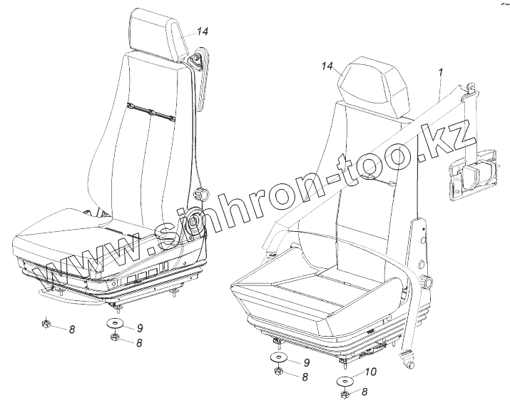 Каталог запасных частей к технике: Камский автозавод 43118 (Евро 4). 5460-5000121 Установка сиденья водителя