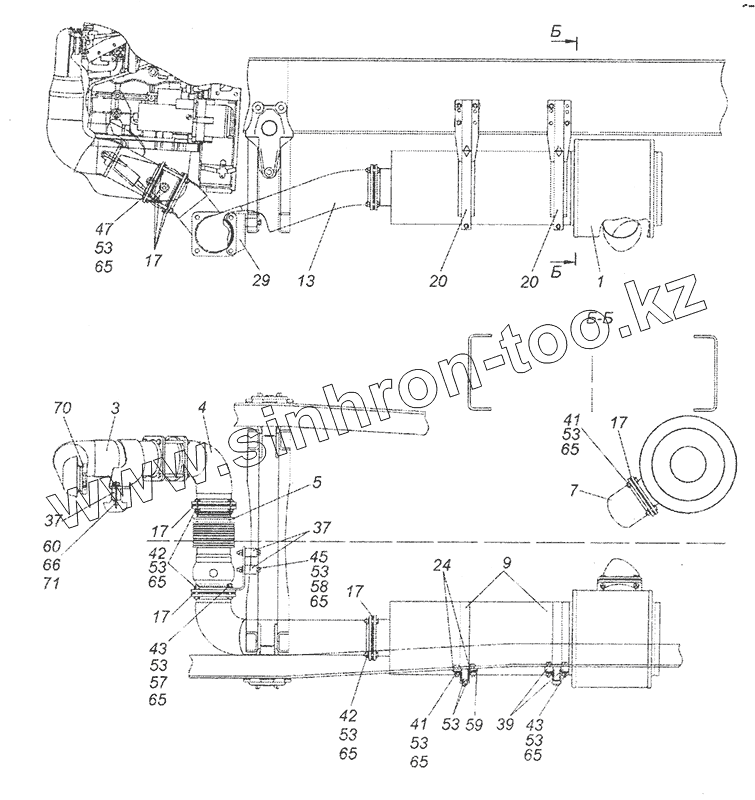 Каталог запасных частей к технике: Камский автозавод 43253 (Часть-1). 43255-1200003 Установка системы выпуска
