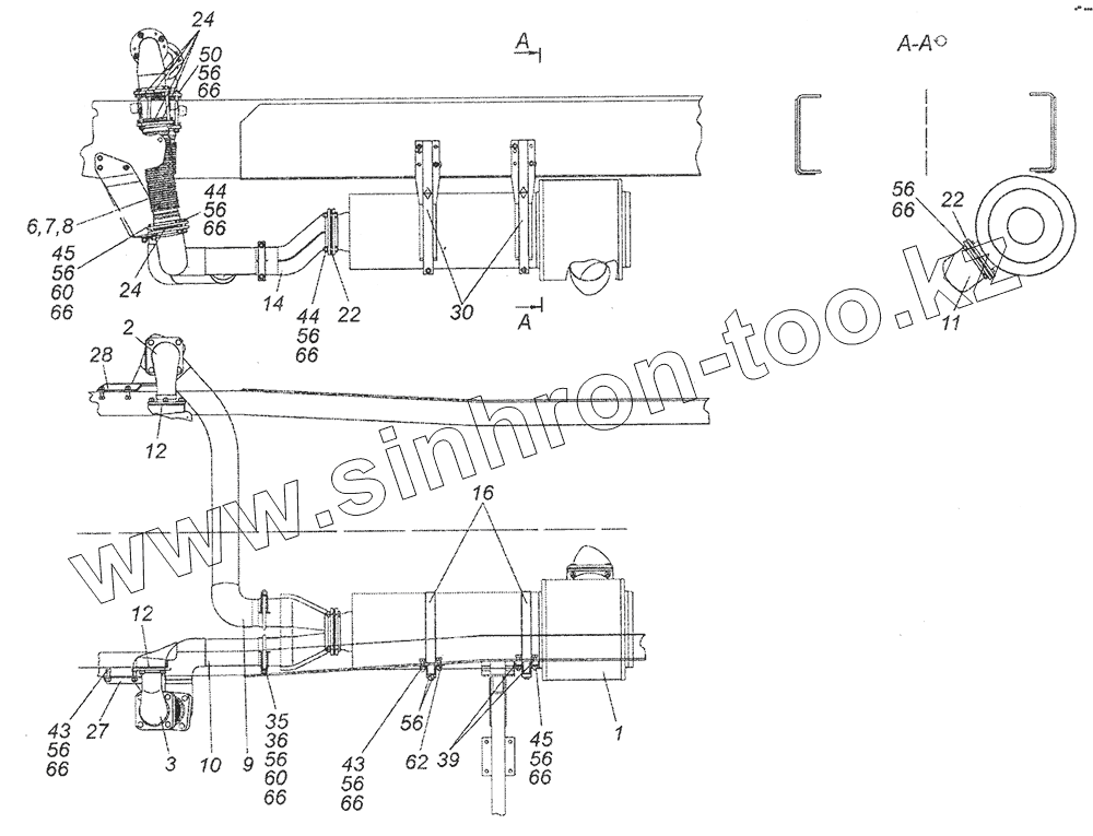 Каталог запасных частей к технике: Камский автозавод 43253 (Часть-1). 65116-1200002 Установка системы выпуска