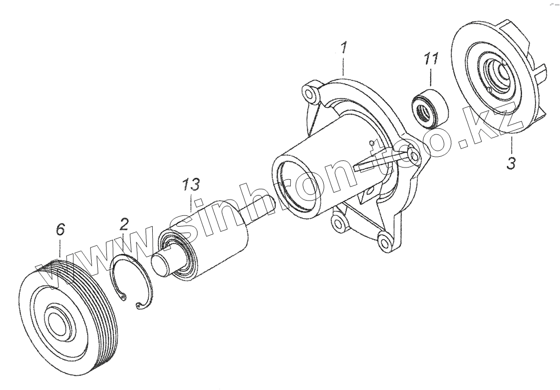 Каталог запасных частей к технике: Камский автозавод 43253 (Часть-1). 740.50-1307010 Водяной насос