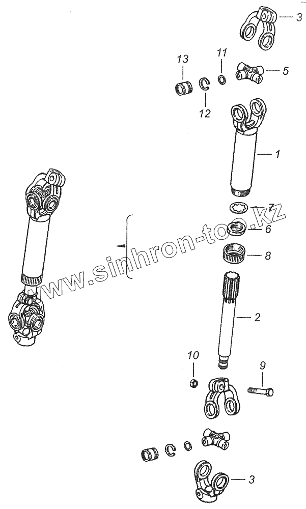 Каталог запасных частей к технике: Камский автозавод 43253 (Часть-2). 53205-3422010-75 Вал карданный