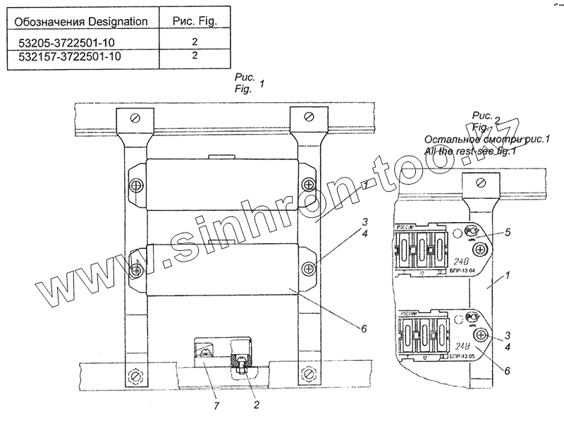 Каталог запасных частей к технике: Камский автозавод 43253 (Часть-2). 53205-3722501-10 Установка предохранителей