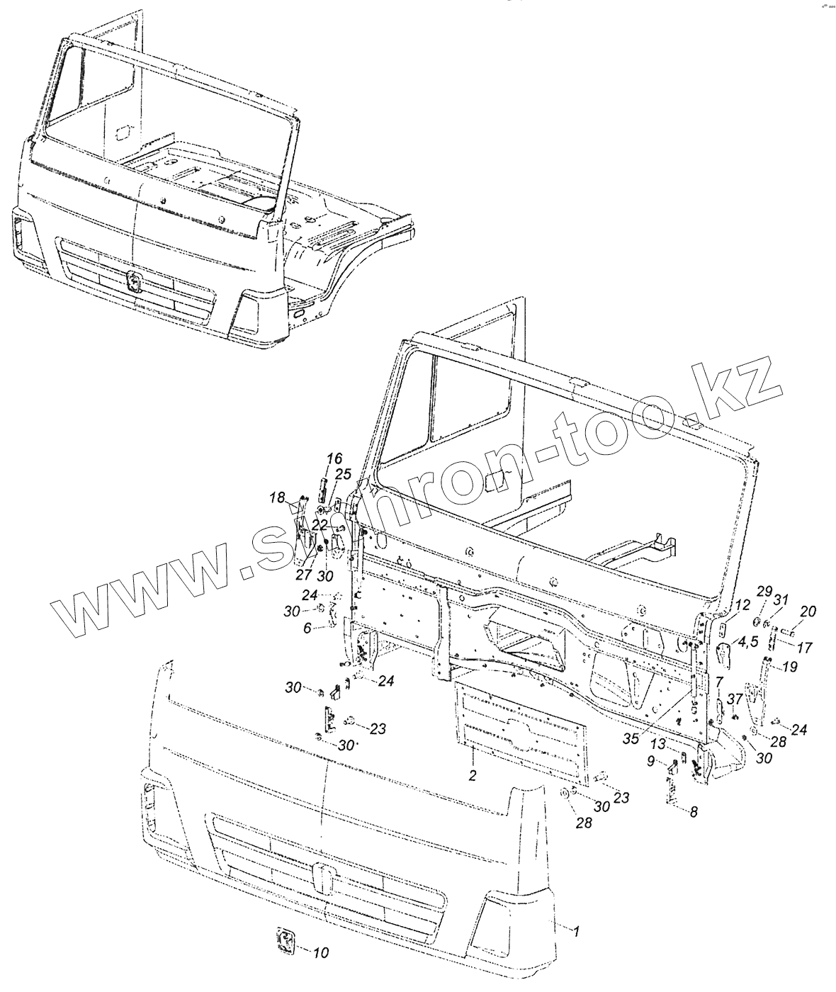 Каталог запасных частей к технике: Камский автозавод 43253 (Часть-2). 63501-8401009 Установка облицовочной панели