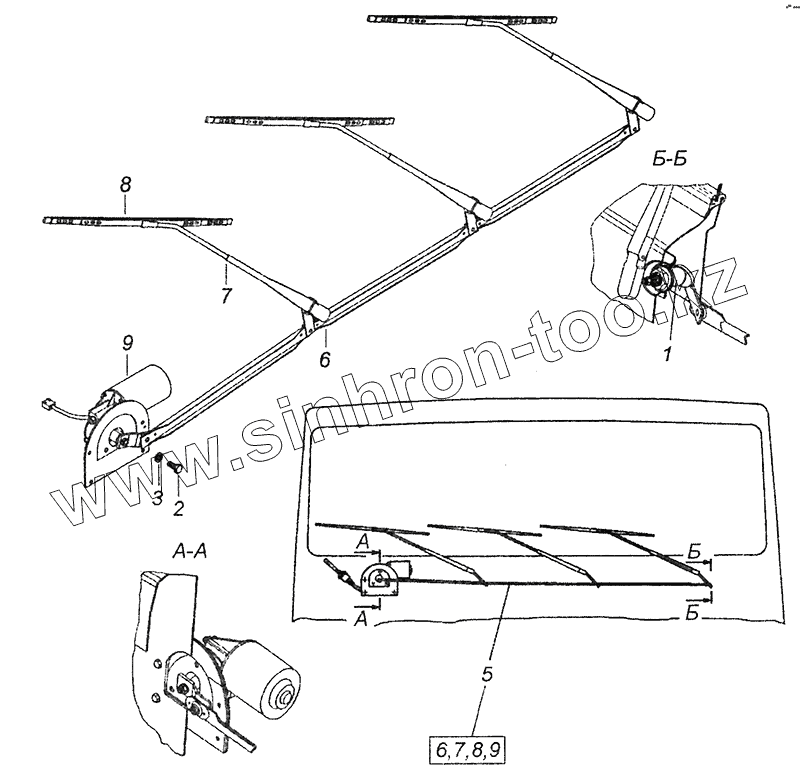 Каталог запасных частей к технике: Камский автозавод 43253 (Часть-2). 6520-5205001 Установка стеклоочистителя