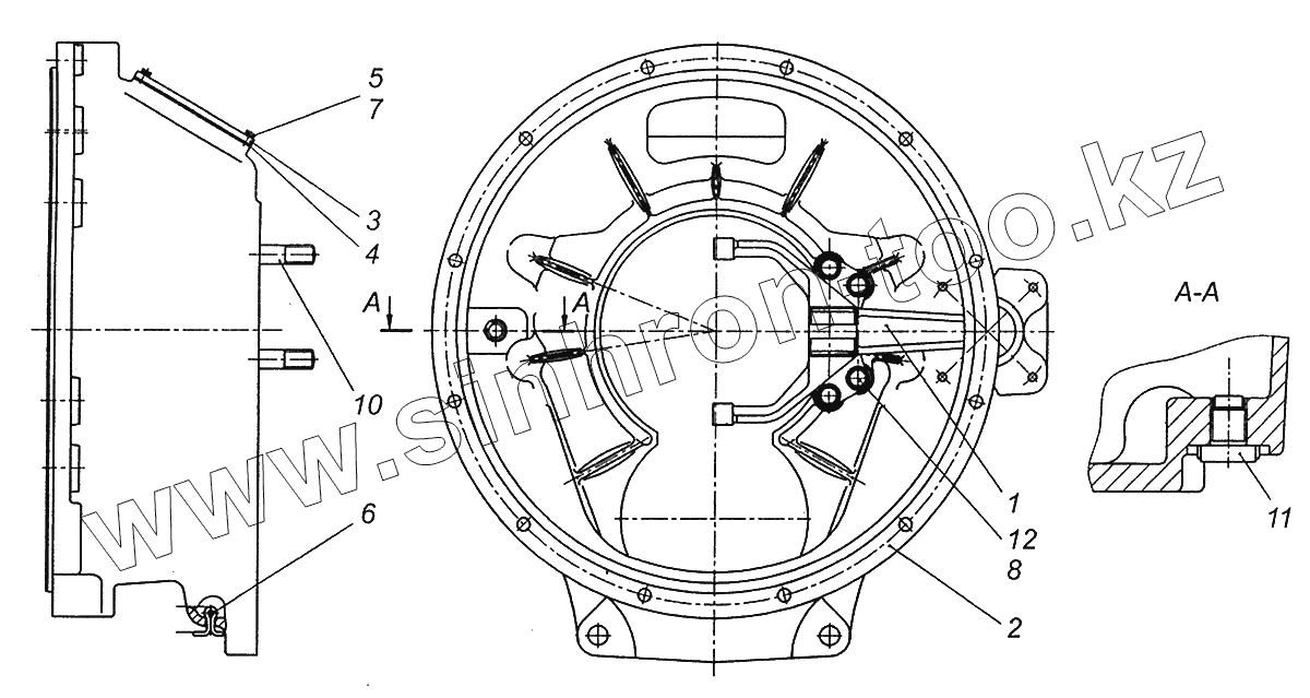 Каталог запасных частей к технике: Камский автозавод 43255 (Евро-2). 4308-1601008 Картер сцепления